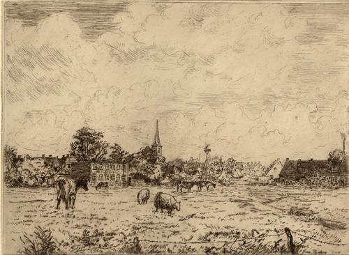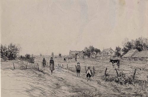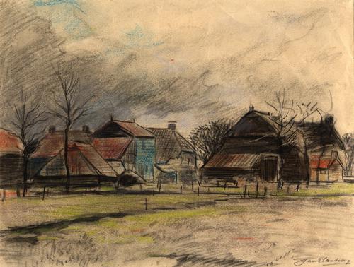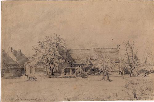Tekening van een boerderijtje aan de Houtlaan te Dra...