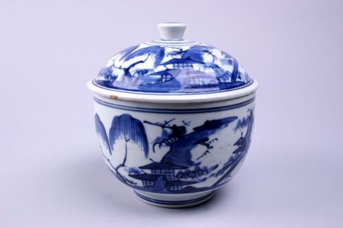 Japanse dekselkom met een decoratie van landschappen