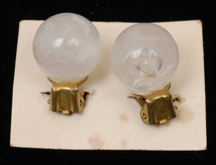 Paar oorbellen, clip met ronde knop van wit glas met...