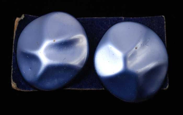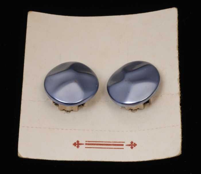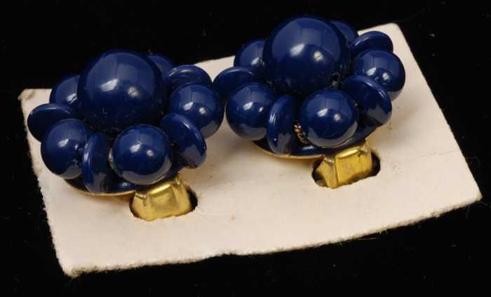 Paar oorbellen, clip met donkerblauwe plastic bollet...