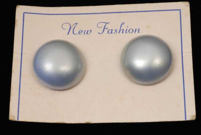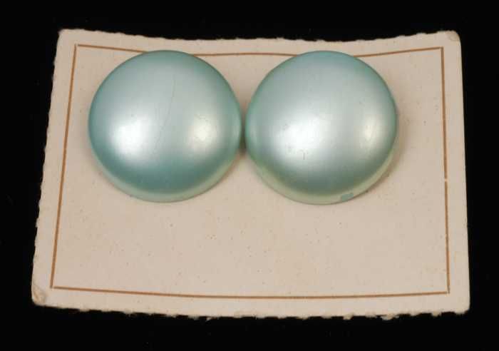 Paar oorbellen, clip met lichtblauwe plastic halve b...