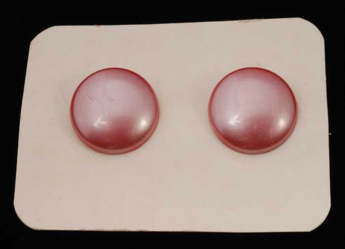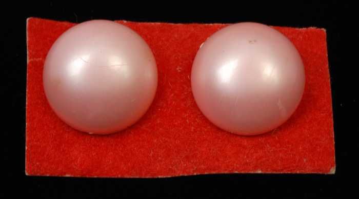 Paar oorbellen, clip met roze plastic halve bollen, ...