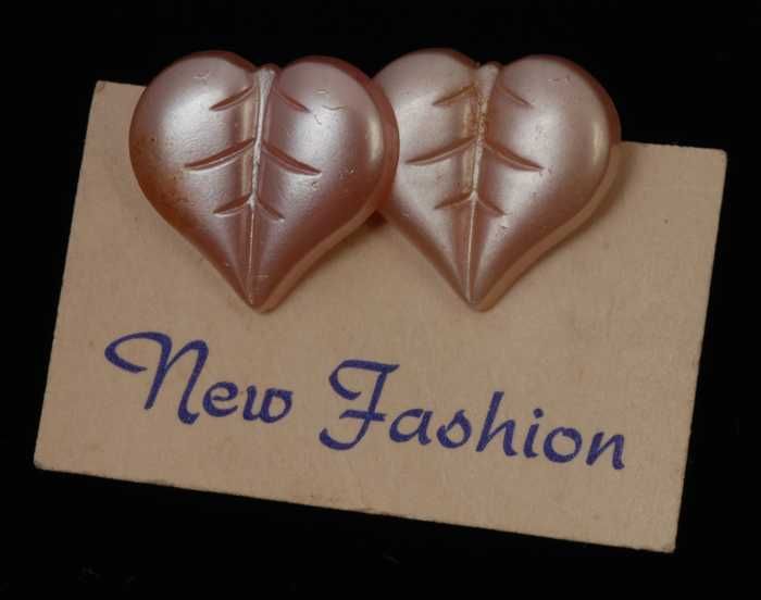 Paar oorbellen, clip met hartvormig blaadje van roze...
