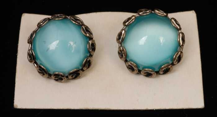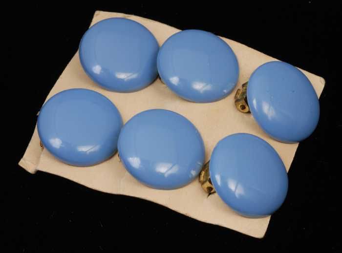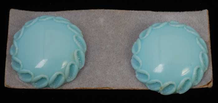 Paar oorbellen, clip met ronde knop van lichtblauw g...