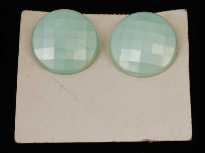 Paar oorbellen, clip met ronde knop van mintgroen ku...