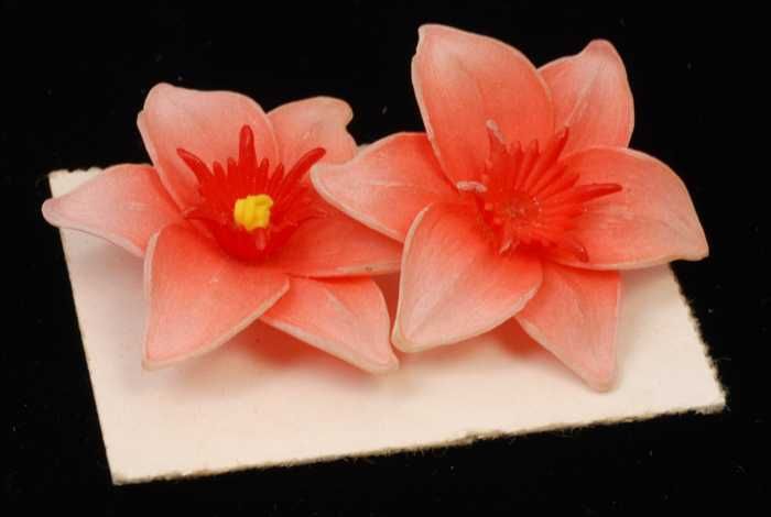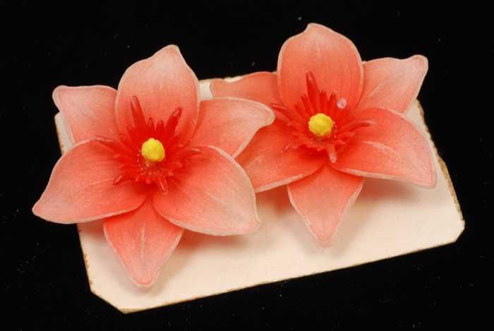 Paar oorbellen, clip met oranjerode zesbladige bloem...