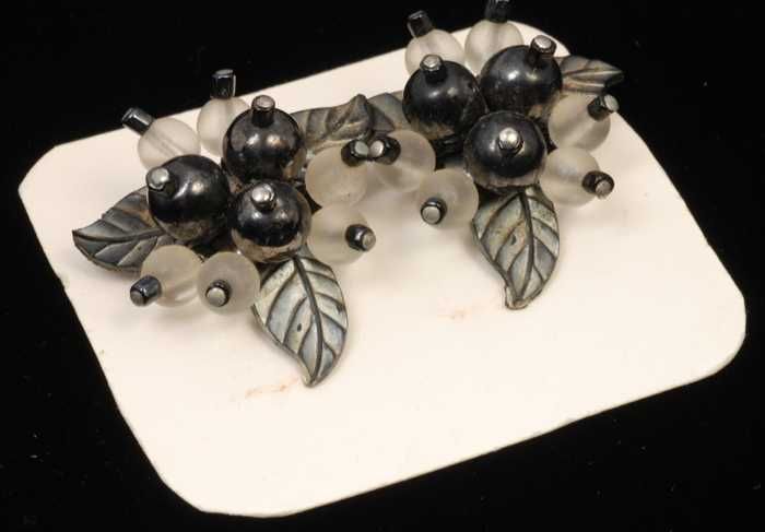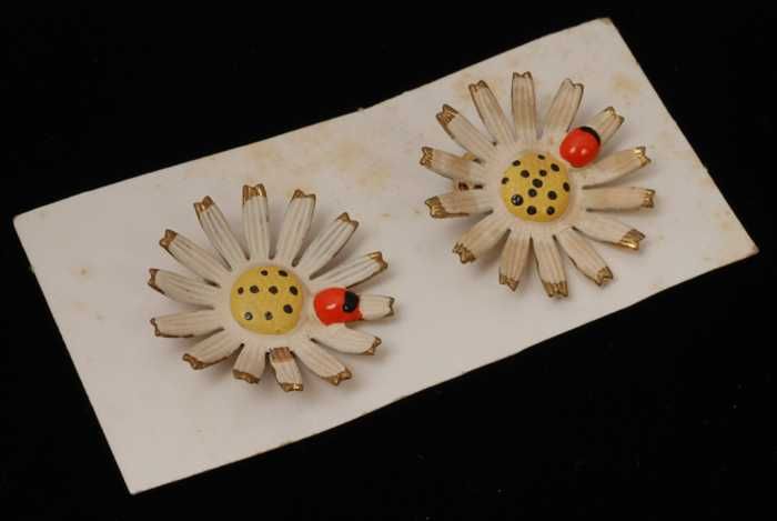 Twee paar oorbellen, clip met metalen bloem, geverfd...