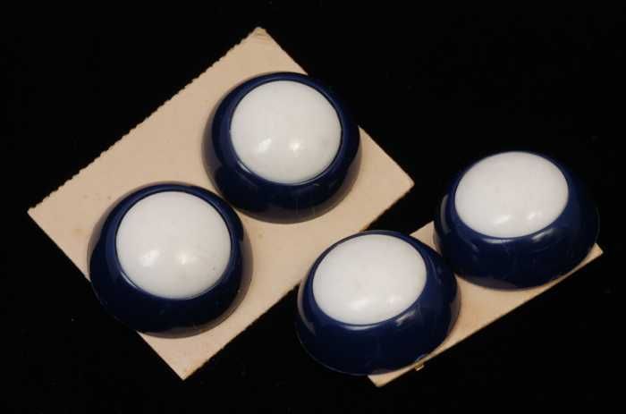 Twee paar oorbellen, clip met ronde blauwe plastic k...