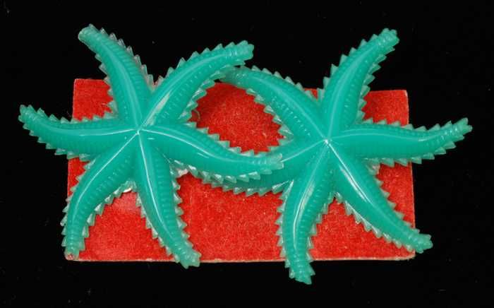 Paar oorbellen, clip met zeester van groen plastic, ...