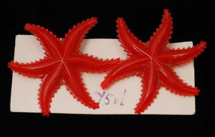 Paar oorbellen, clip met zeester van rood plastic, o...