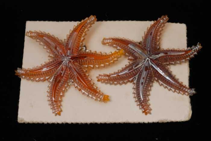 Paar oorbellen, clip met zeester van oranje transpar...
