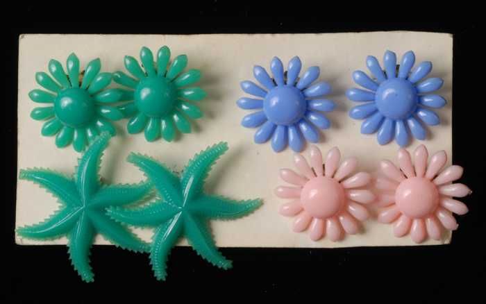 Vier paar oorbellen, clips met plastic bloemen en ze...
