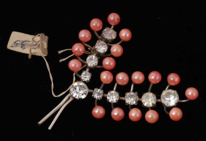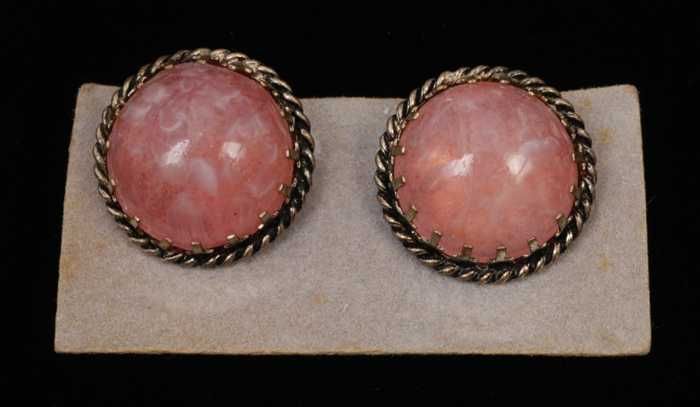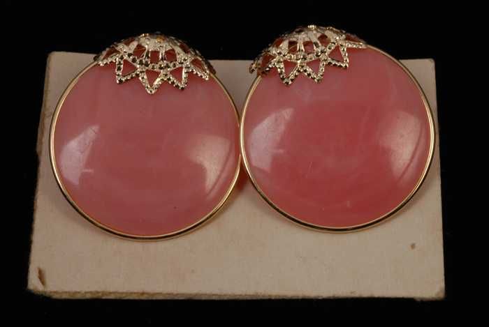 Paar oorbellen, clip met ronde halfbolle roze glazen...
