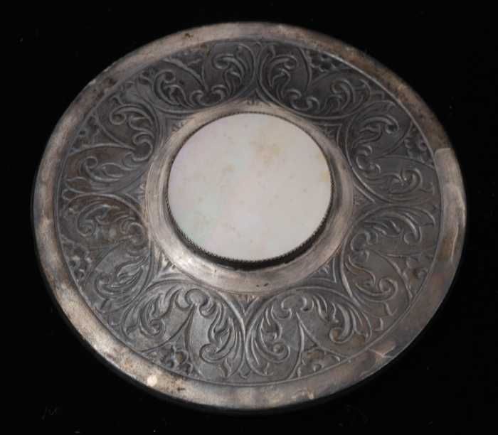 Broche, ronde sierspeld van metaal met ingegraveerd ...