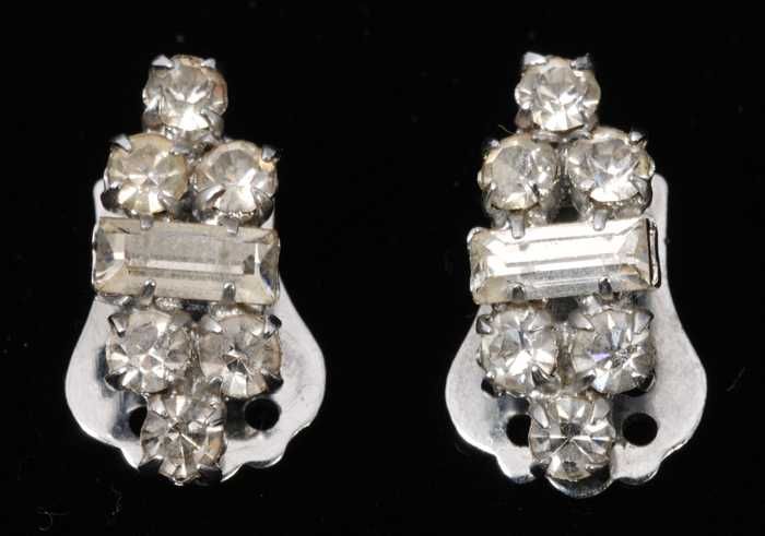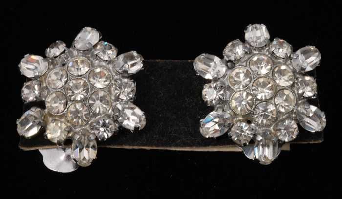 Paar oorbellen, clip met kunstdiamantjes in een ruit...