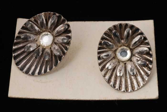 Paar oorbellen, clip met platte ovale gedeukte knop ...