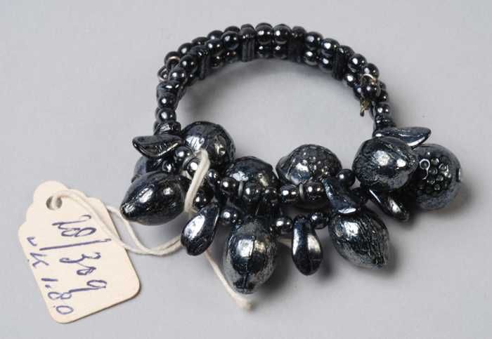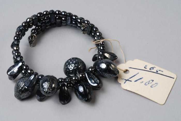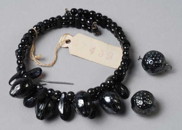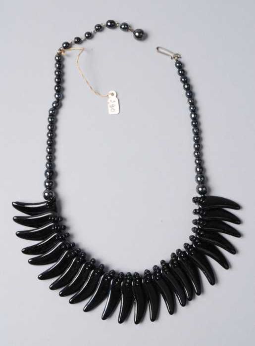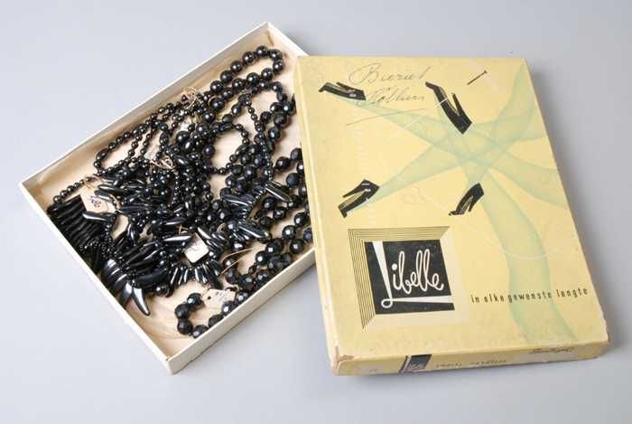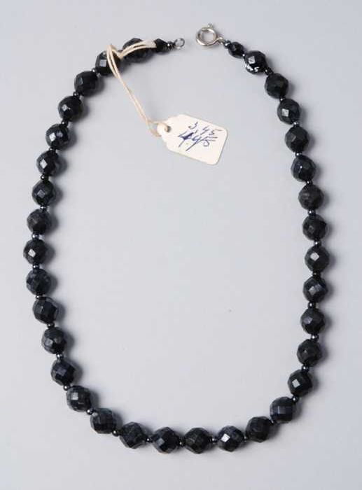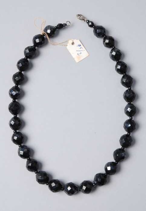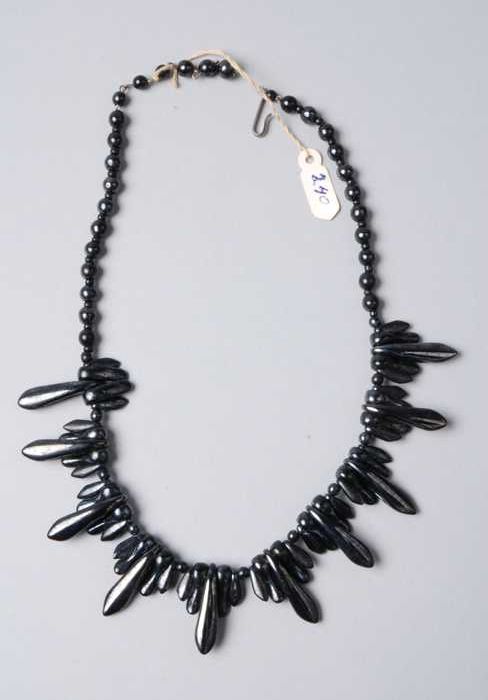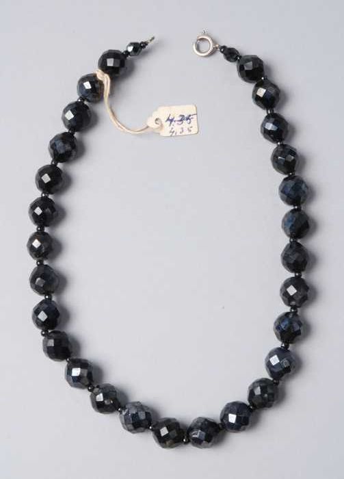 Halsketting, snoer van zwart metalliek glanzende gla...