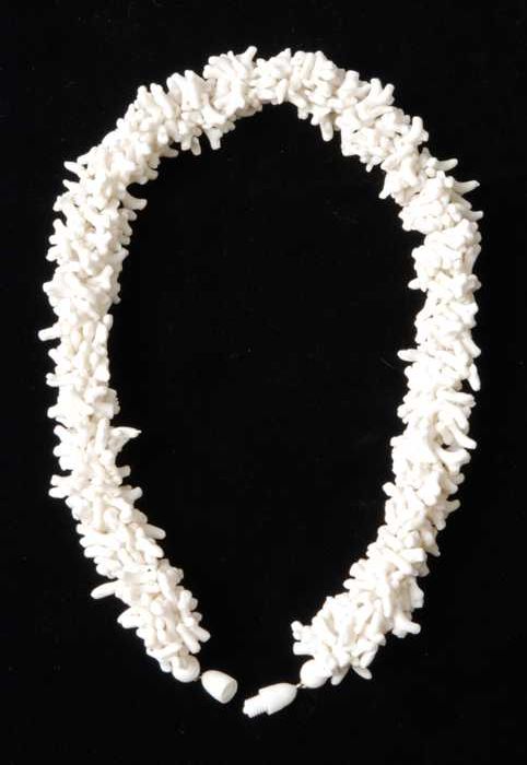 Halsketting en bijpassende clip-oorbellen, wit plast...