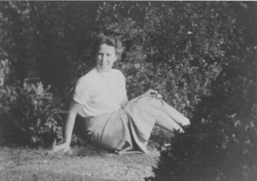 Zr. Tober directrice van het weeshuis zittend in de ...