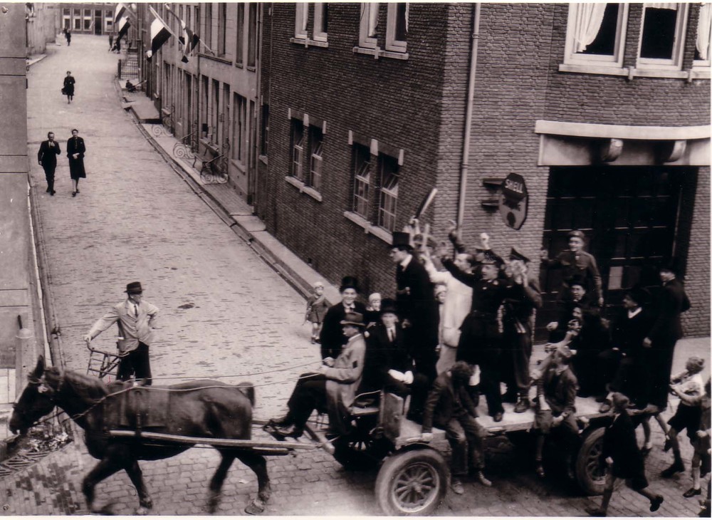 Bevrijdingsfeest mensen op een paardenkar,1945