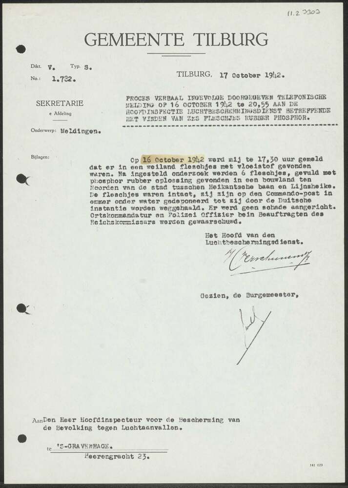 Proces-verbaal 1.782 Gemeente Tilburg 17 oktober 1942.
