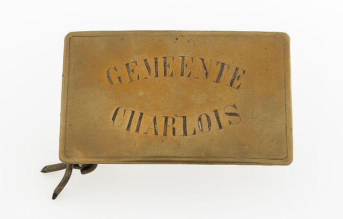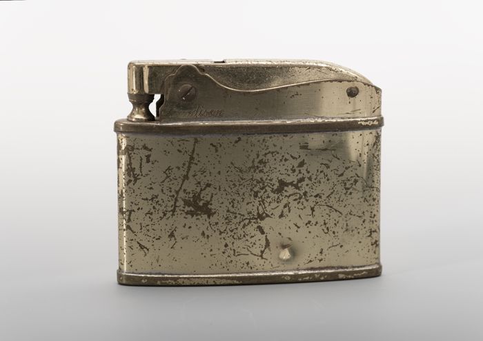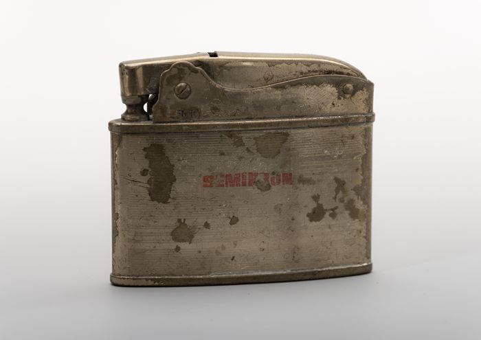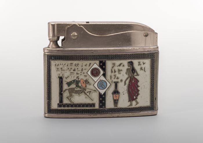 Koperen benzineaansteker in ellipsvormige koperen ho...