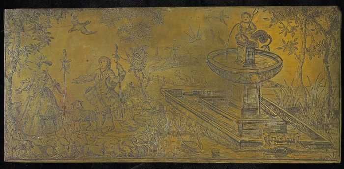 Mal voor kunstdraaiwerk, landschap met herder, hert ...