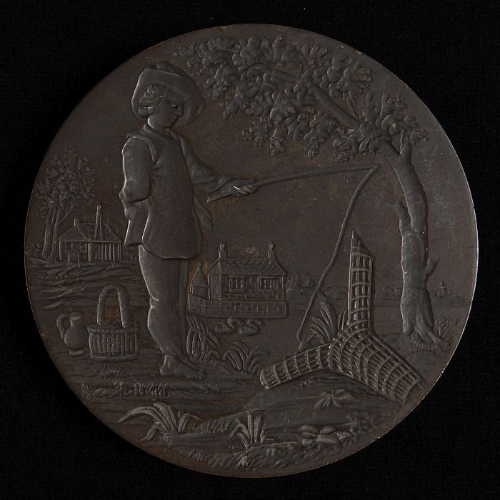 Mal voor kunstdraaiwerk, landschap met man die vist
