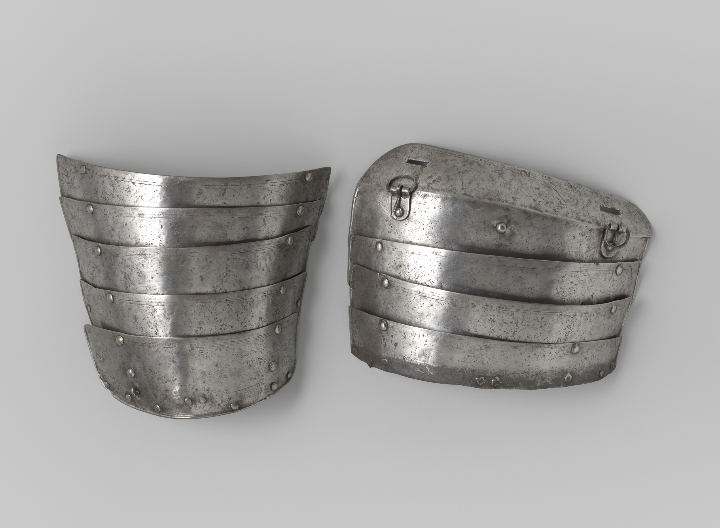Paar beenplaten behorend bij de wapenrusting, vermoe...