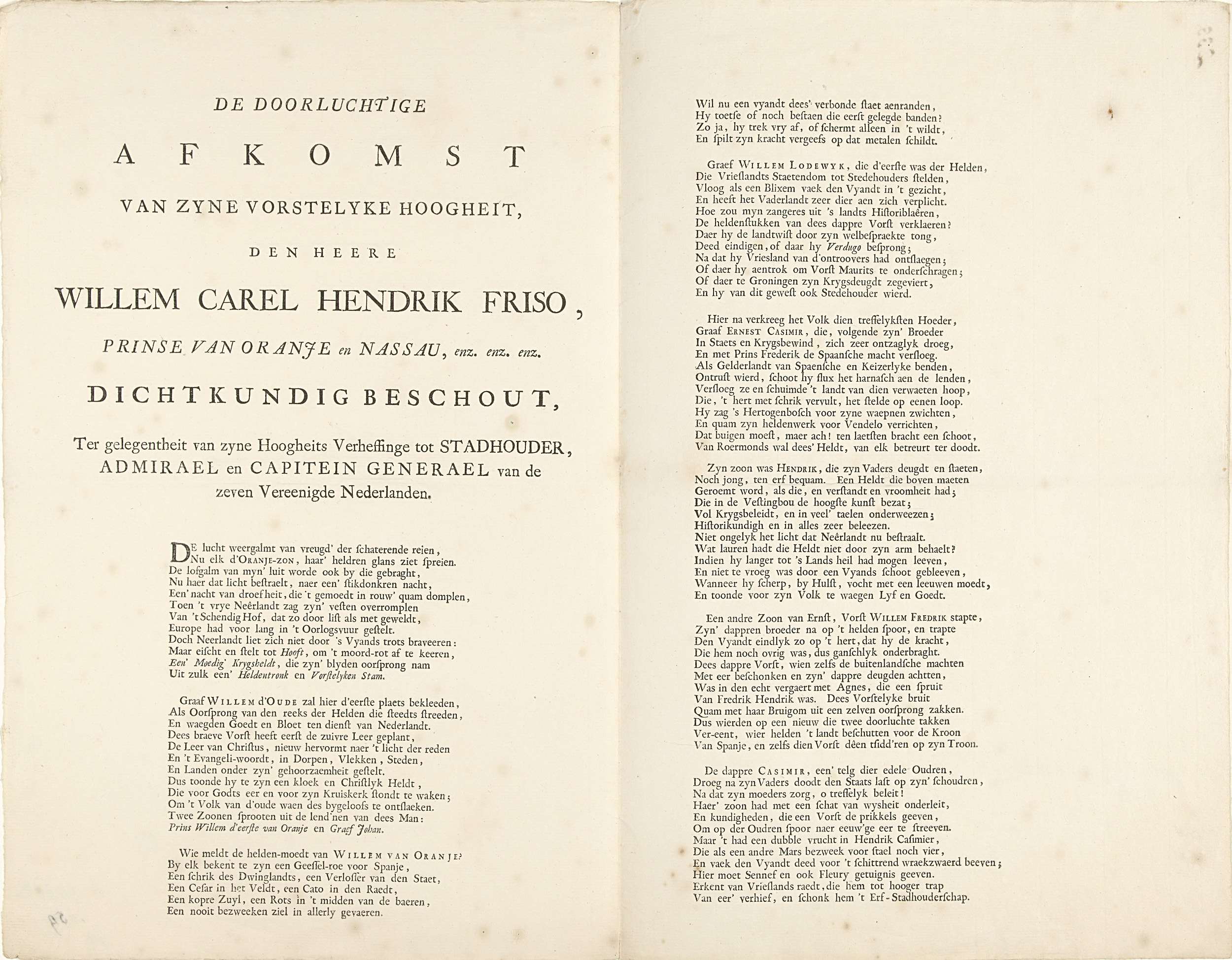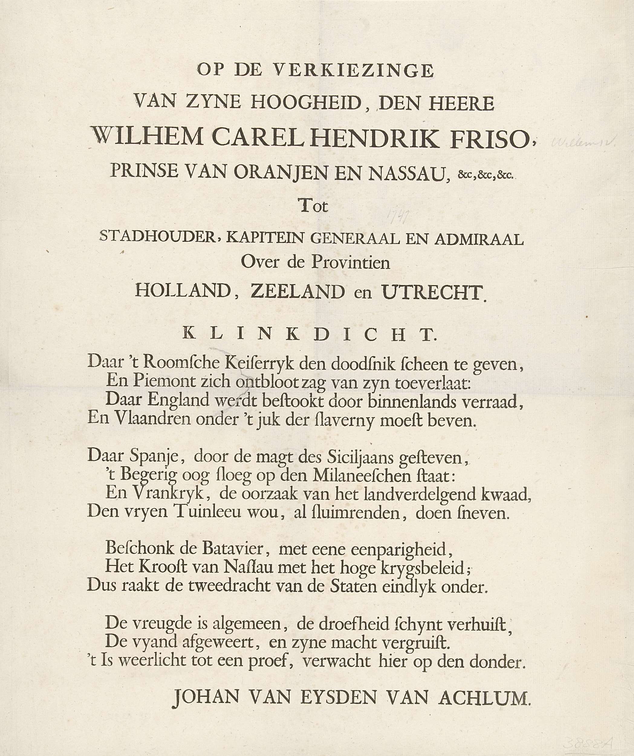 Vers op de verkiezing van Willem IV tot stadhouder (...
