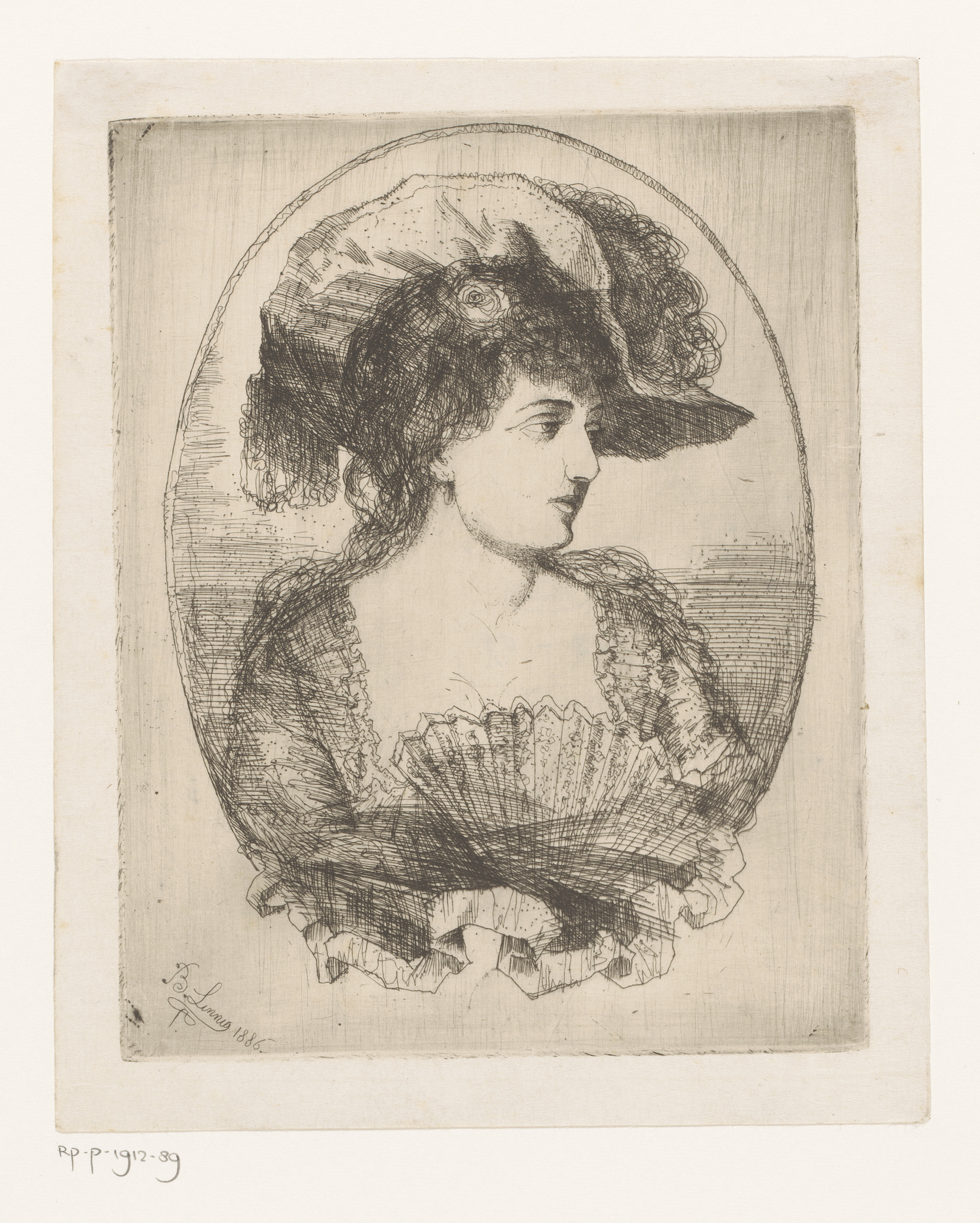 Portret van een onbekende jonge vrouw met hoed en wa...
