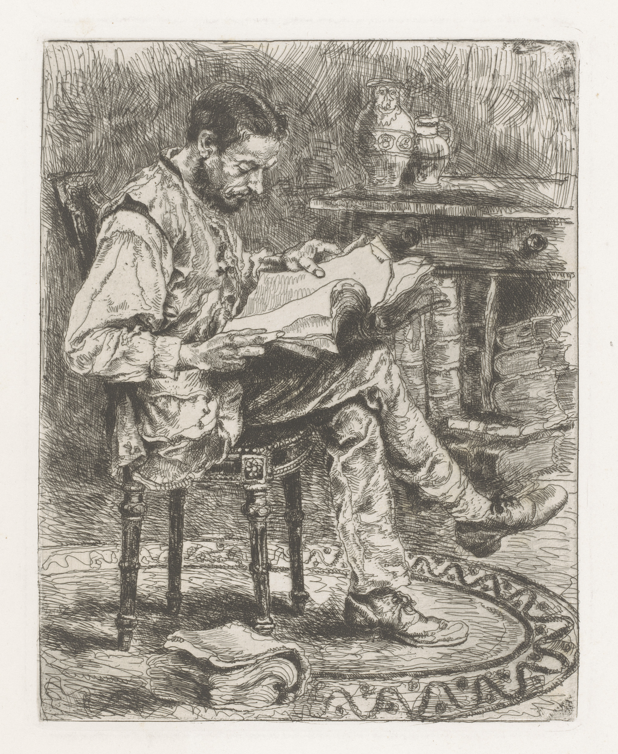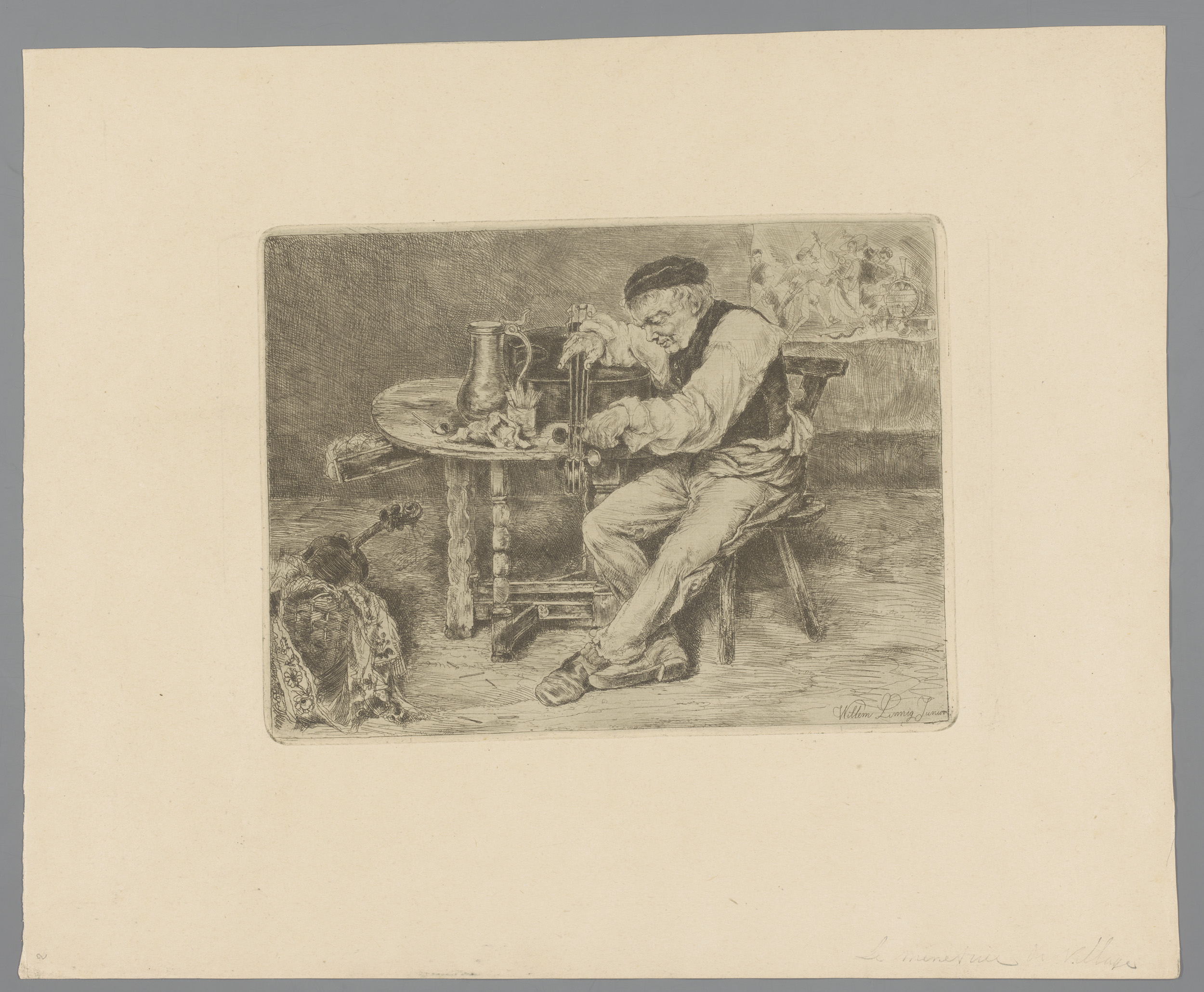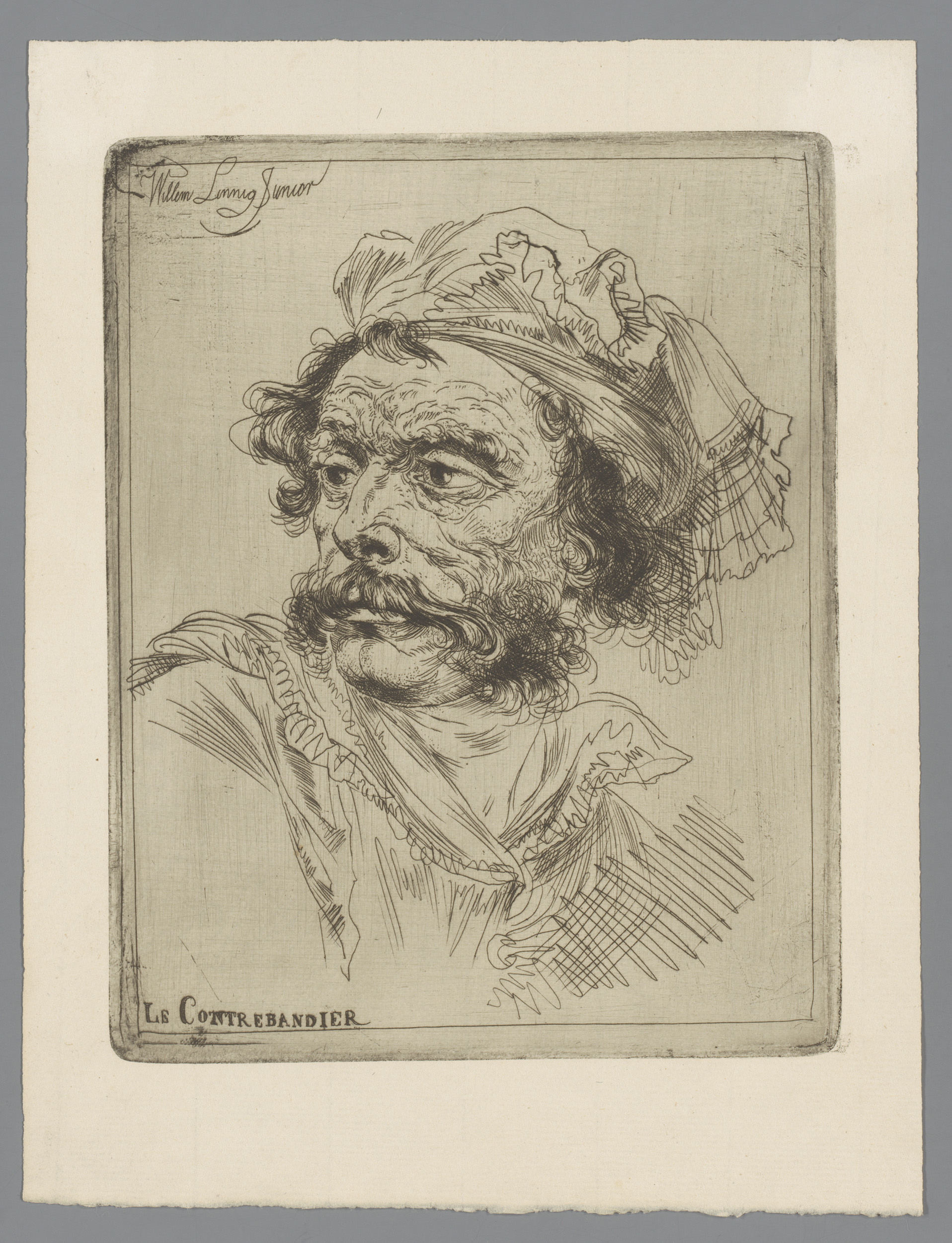 Portret van Willem Linnig senior, rook uitblazend