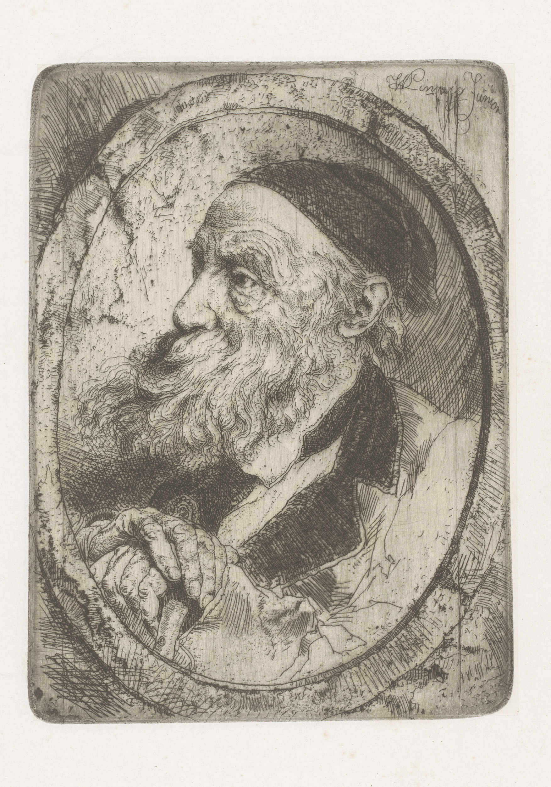 Portret van een onbekende oude man met zijn handen o...