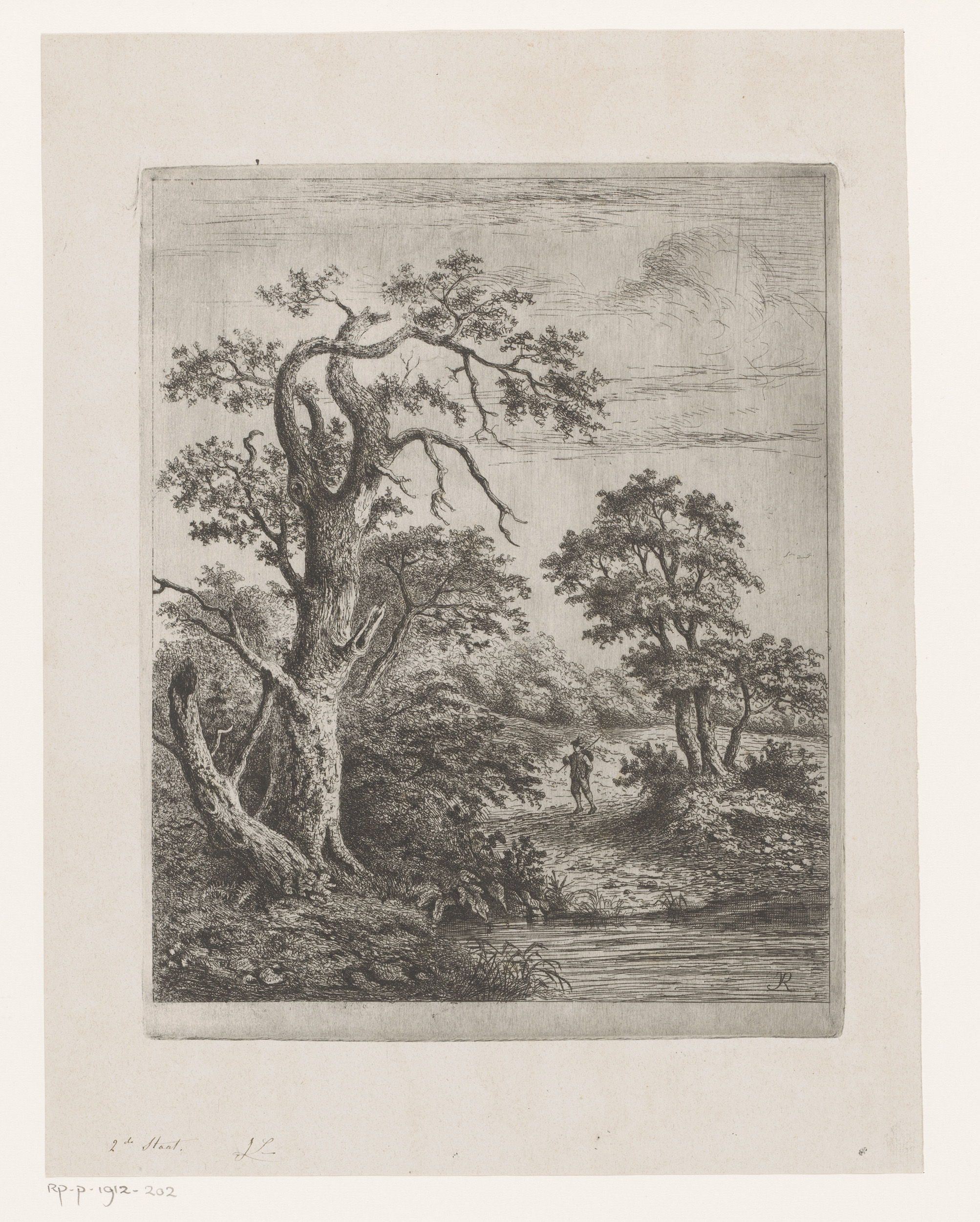 Landschap met wandelaar bij water