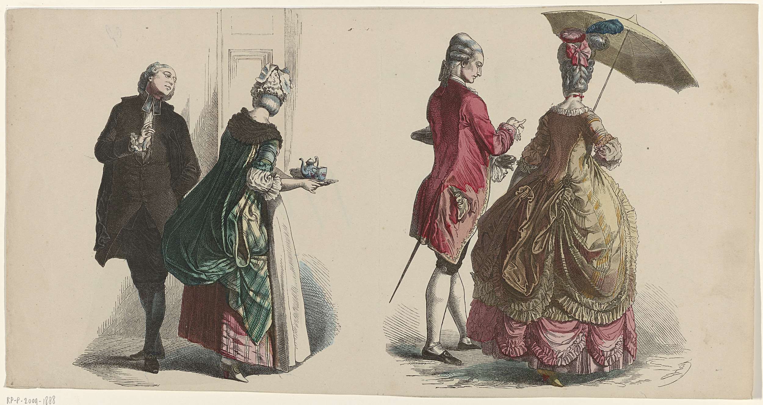 Twee dames en heren in 18de-eeuwse kleding
