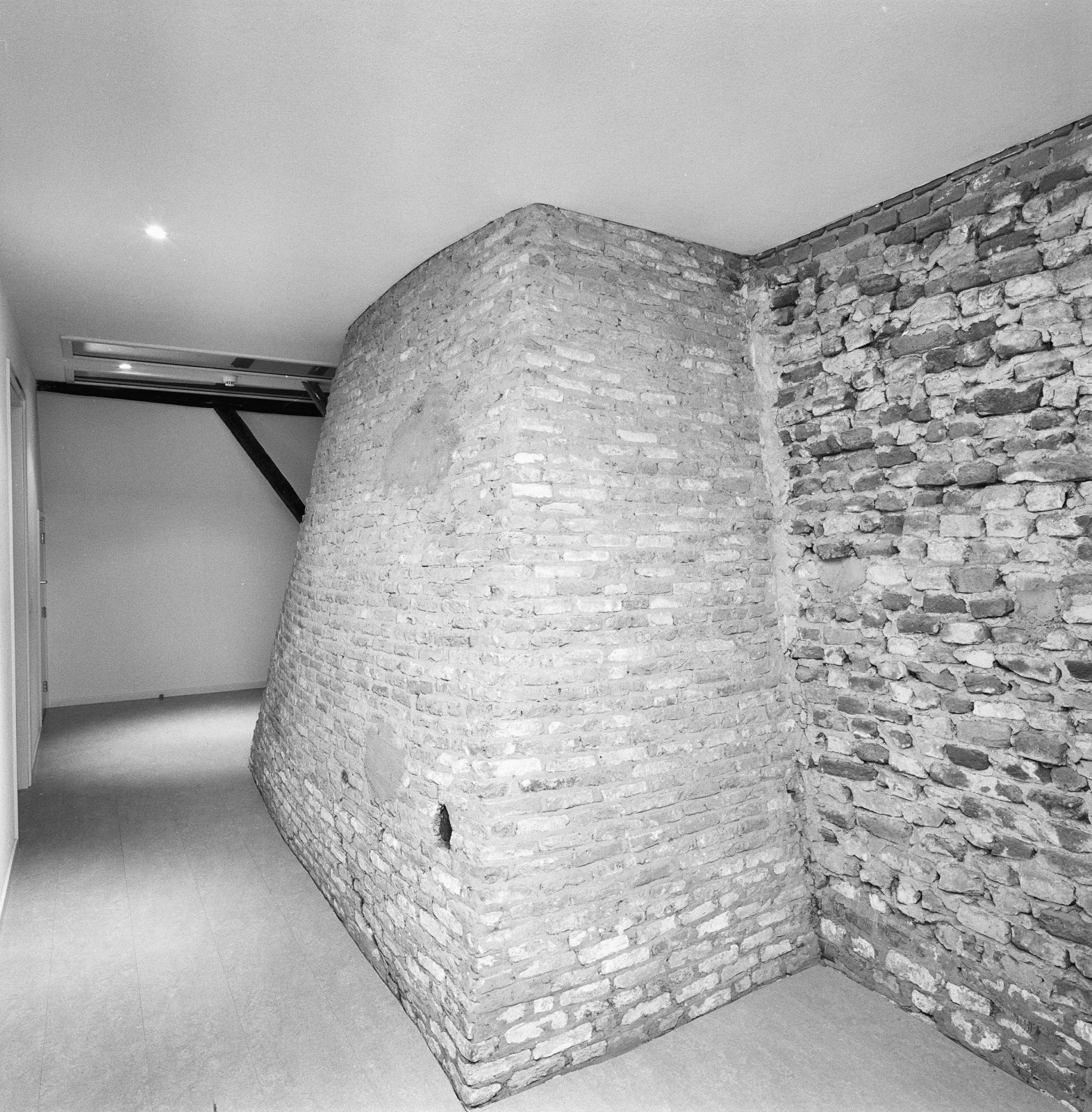 Interieur, gemetselde schouw op de bovenverdieping