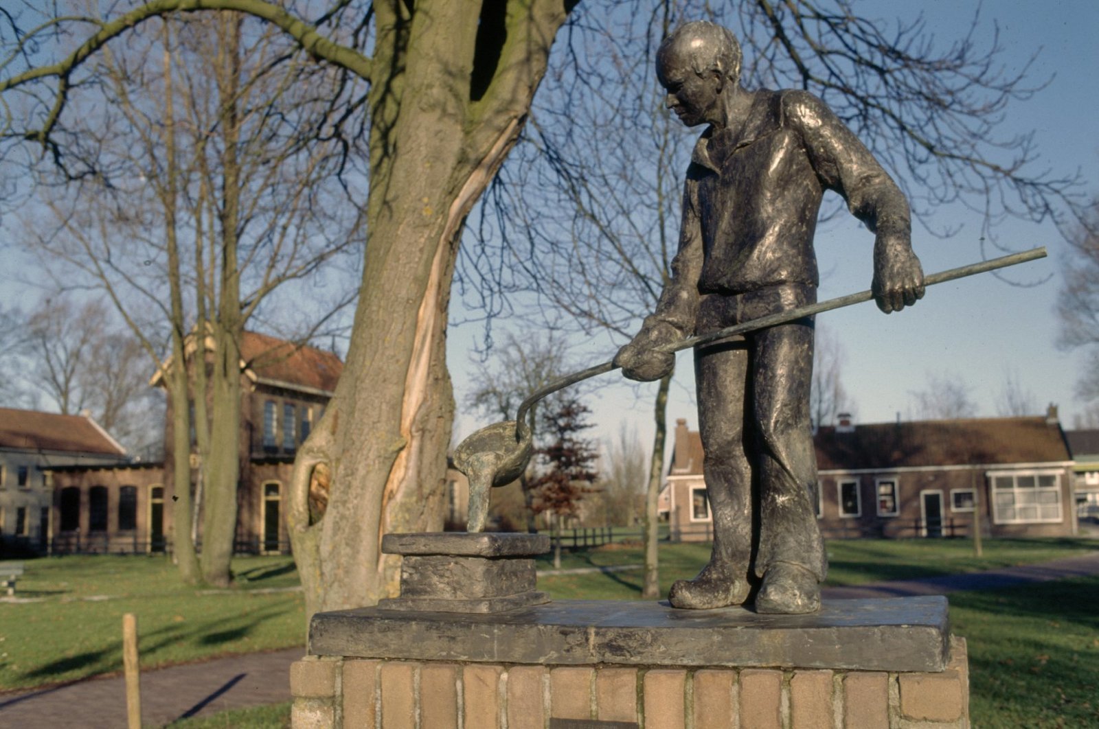 Geelgieter, bronzen beeld door Annet Haring