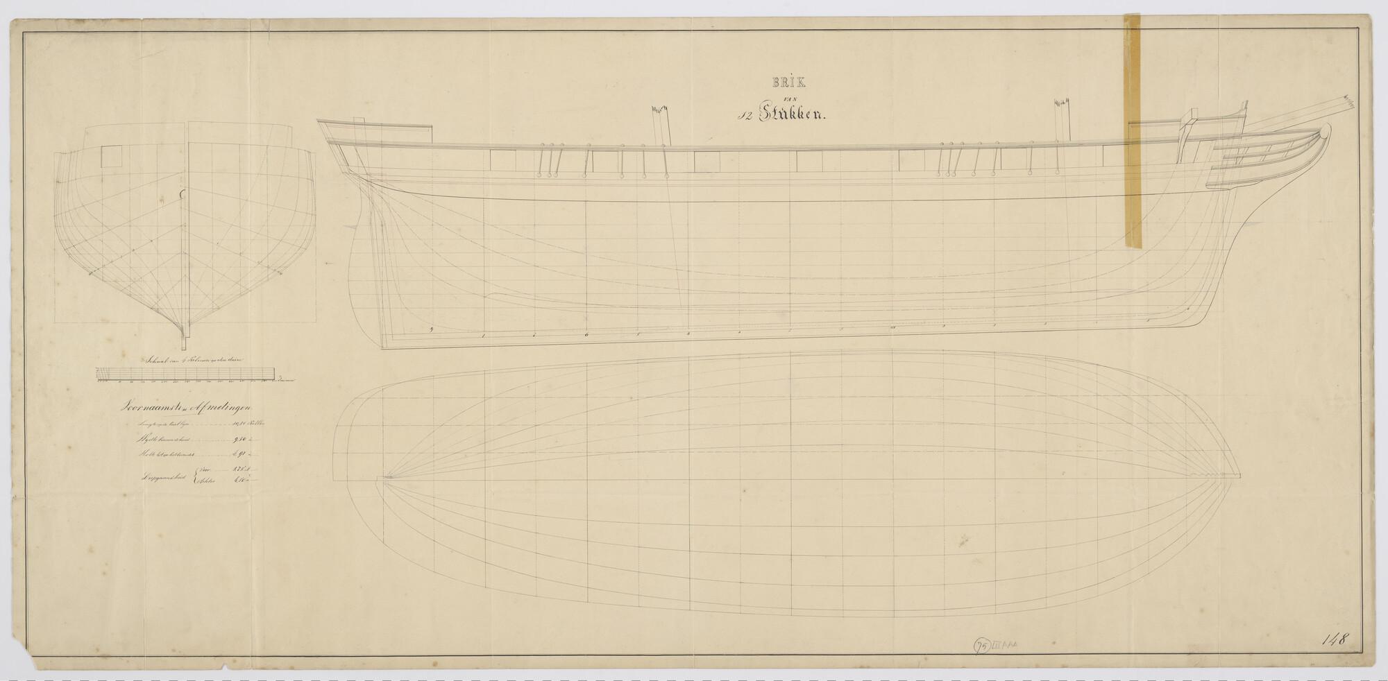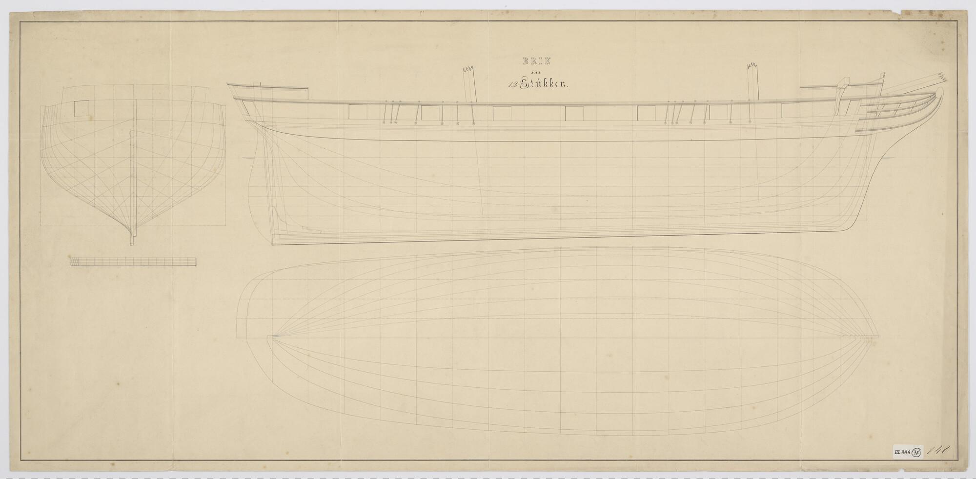 Lijnenplan van een brik van 12 stukken
