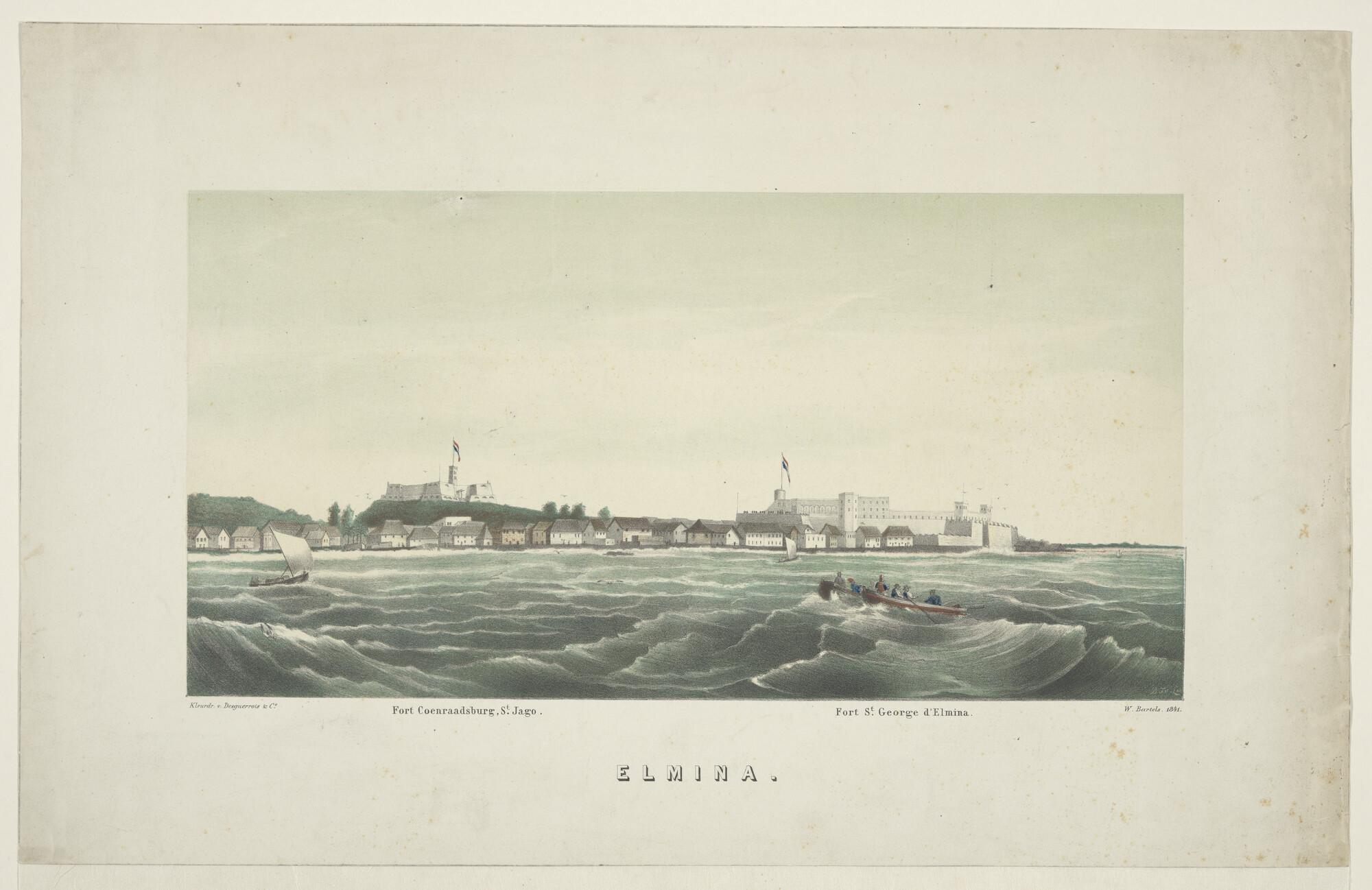 Gezicht op Elmina, met de forten