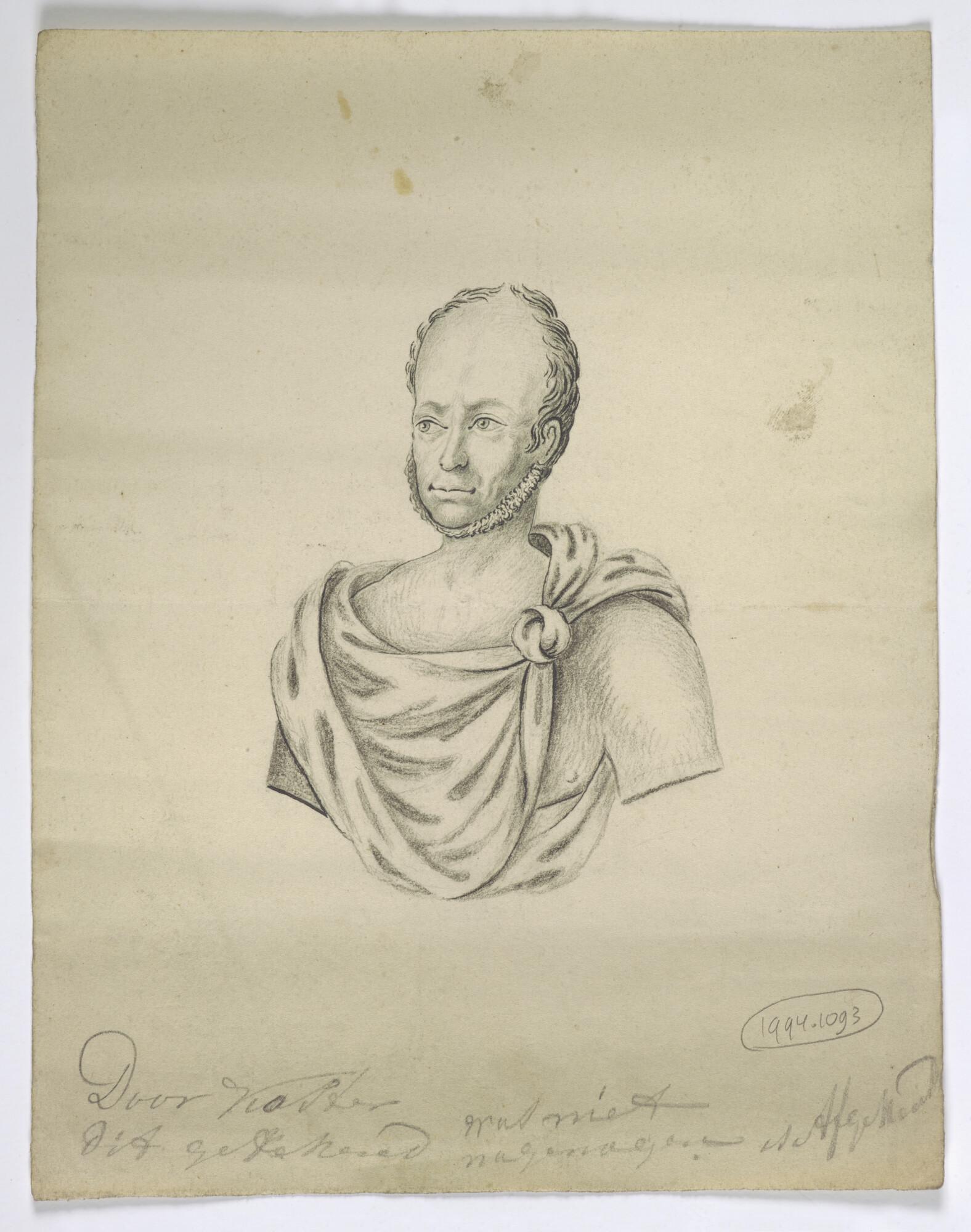 Tekening van een borstbeeld van een mannenfiguur met...