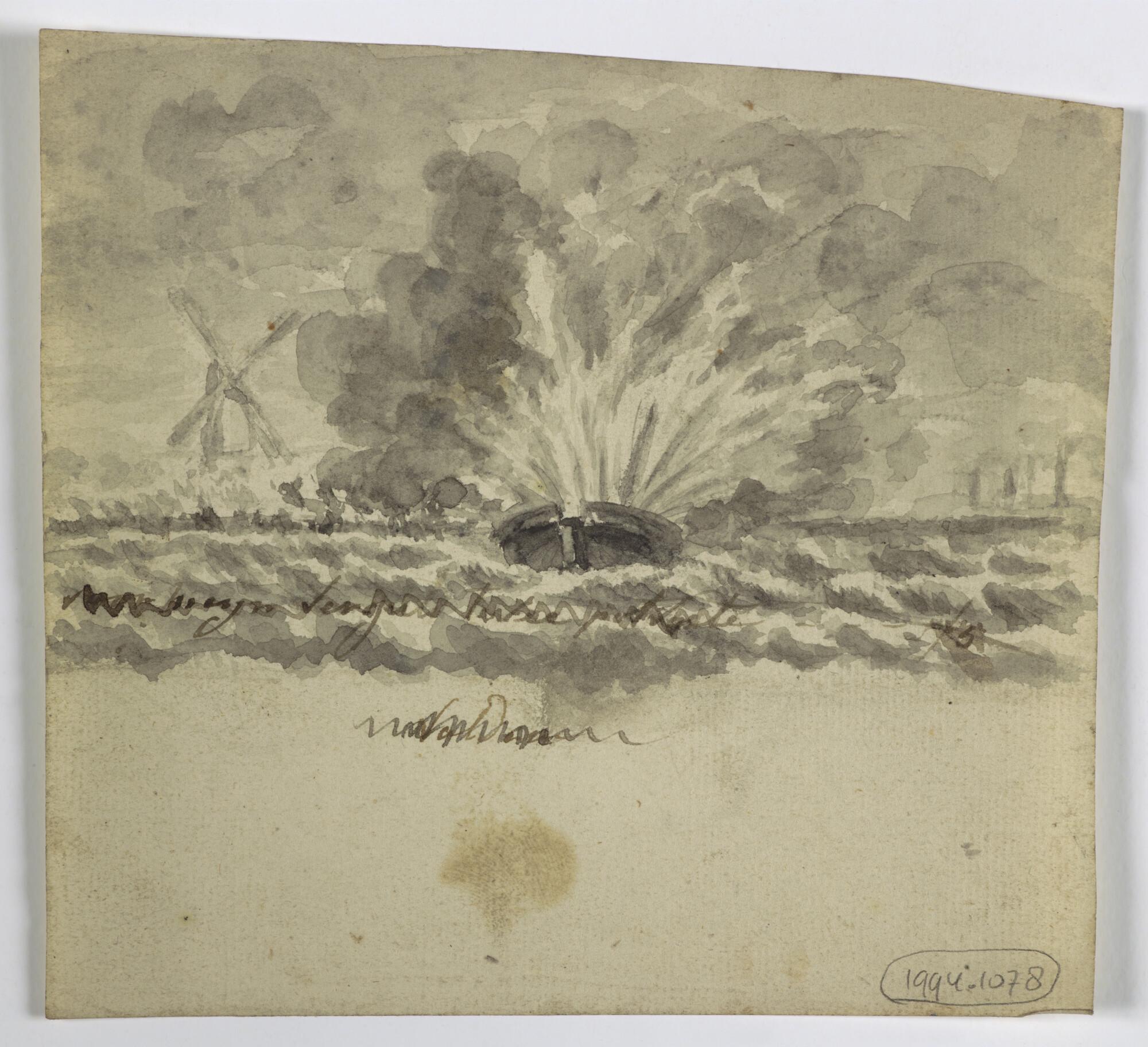 Tekening van een exploderend schip