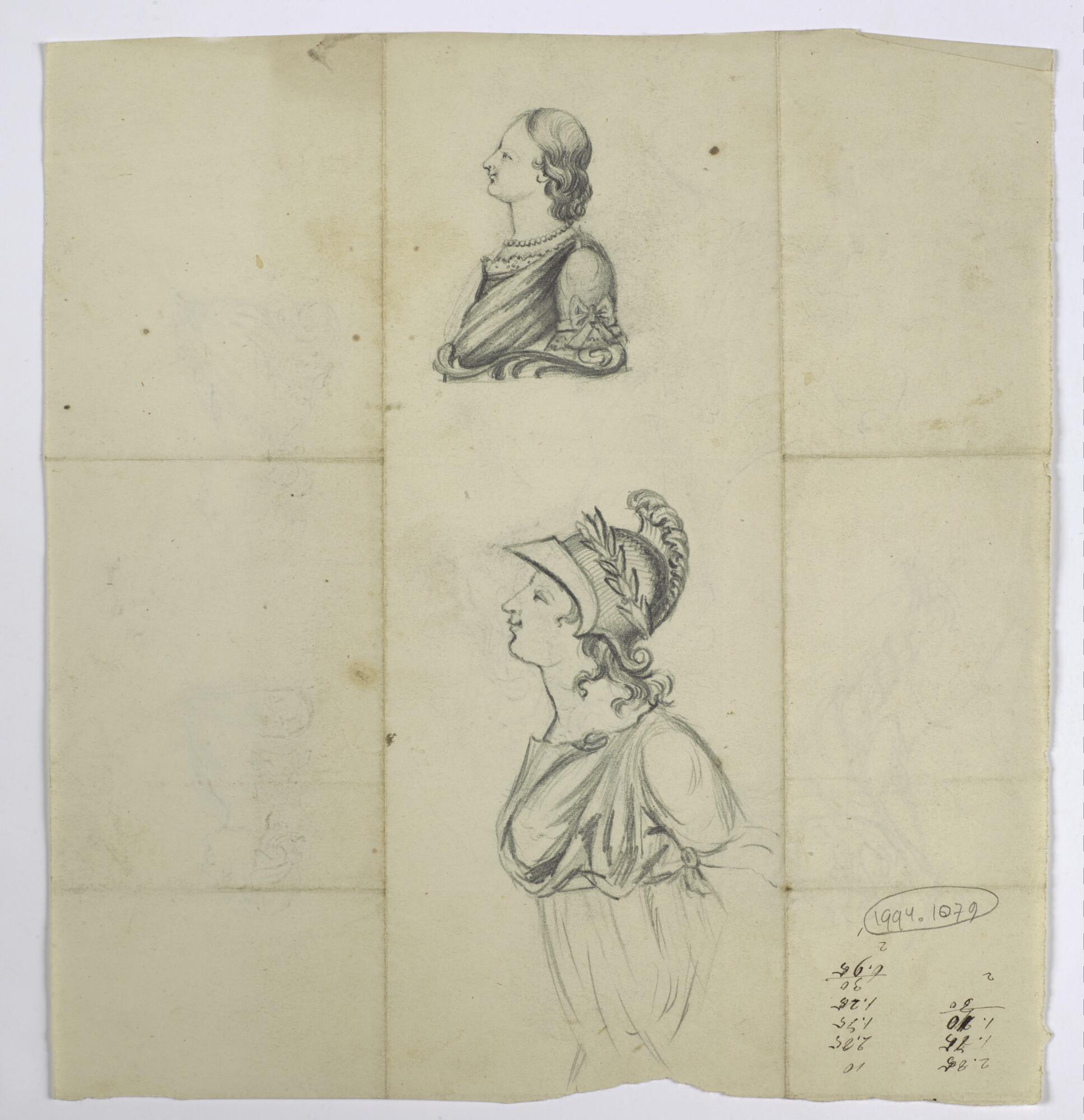 Tekening van twee borstbeelden van vrouwen, waarvan ...