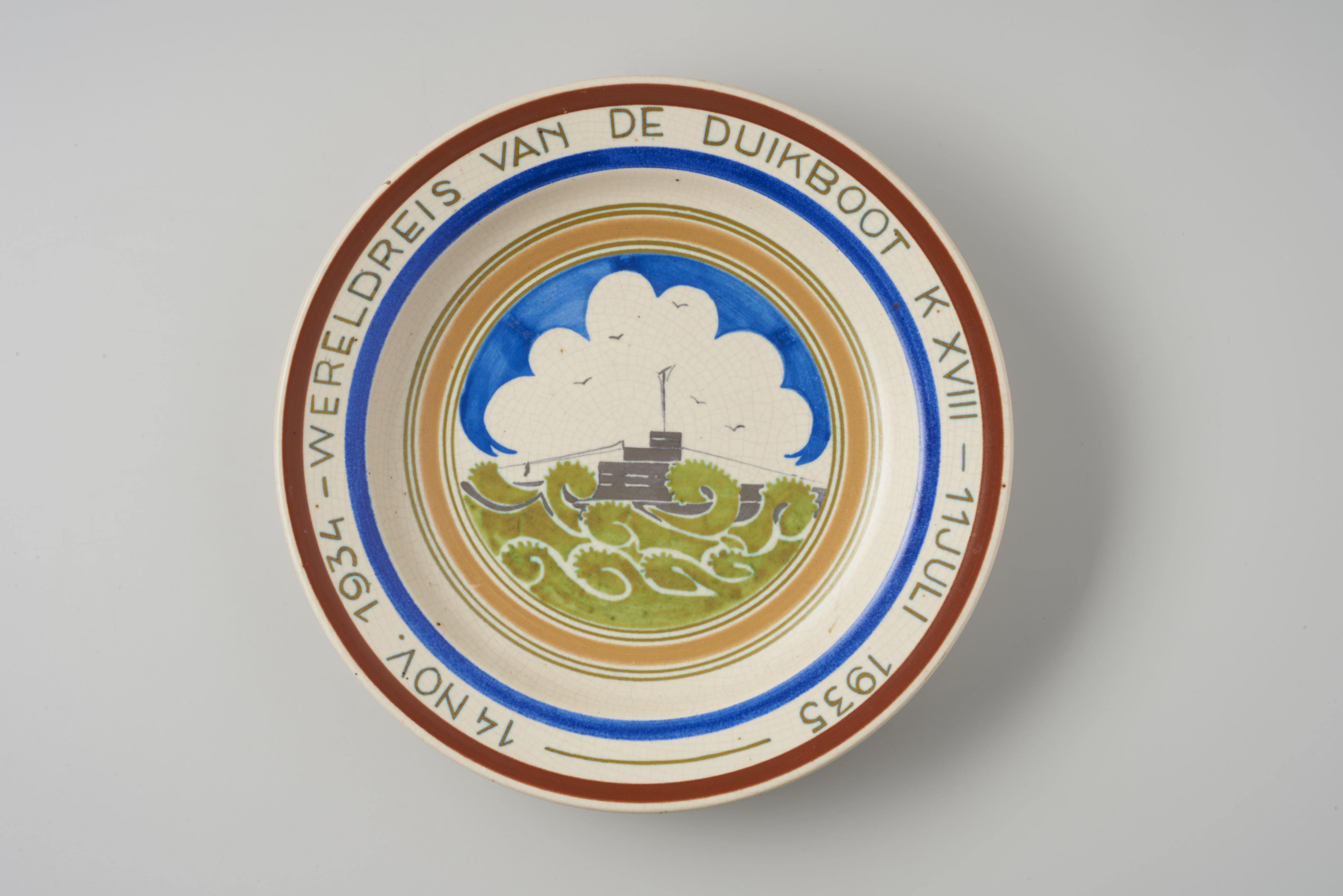 Gedenkbord 'Wereldreis van de duikboot K XVIII', Gou...