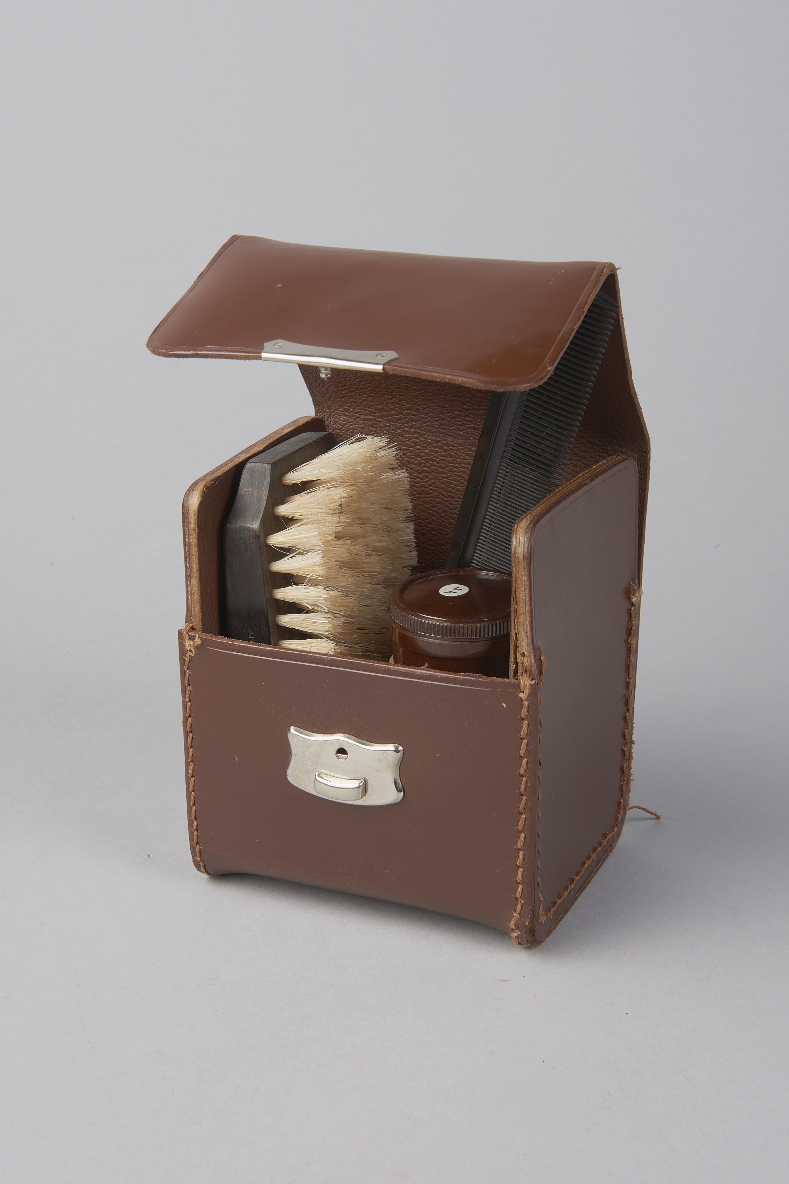 Scheerset met etui, kam, kleerborstel en kokers, cir...