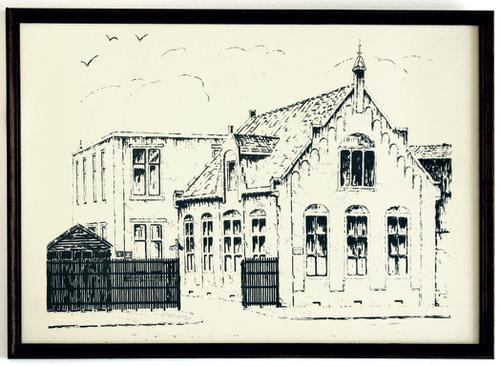 Pentekening. Gebouw Gasfabriek Hoflaan Vlaardingen.