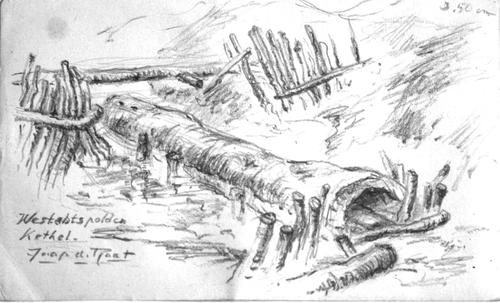 Potloodtekening. Hooischuit in de Vlietlanden, Vlaar...