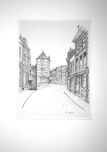 Pentekening. Hoogstraat met ‘Het Pad’ naar de Kuiper...