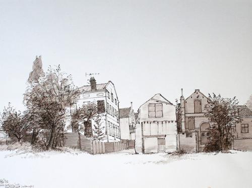 Pentekening. Bauwstraat waterstokerij Buitenlust Vla...