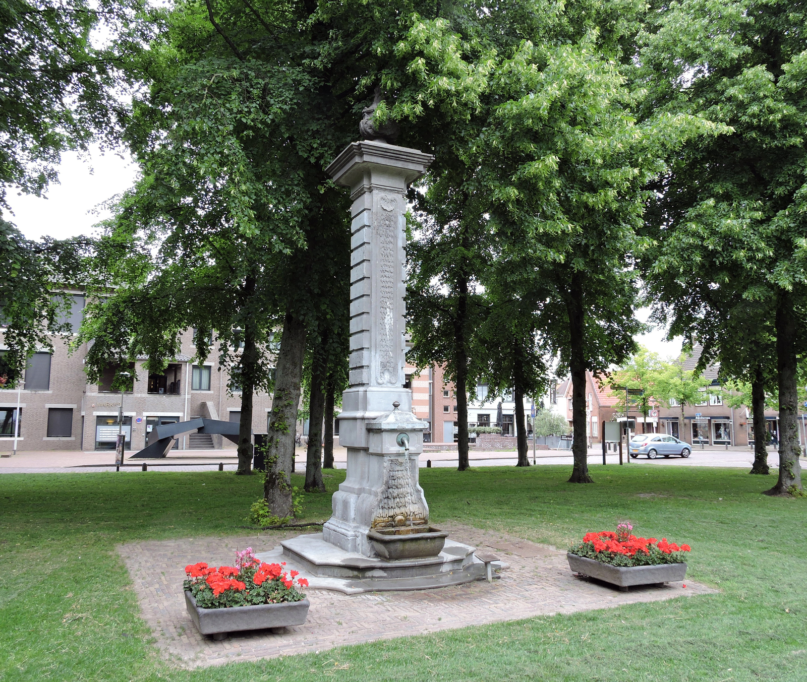 Hardstenen waterpomp aan de noordkant van de Markt