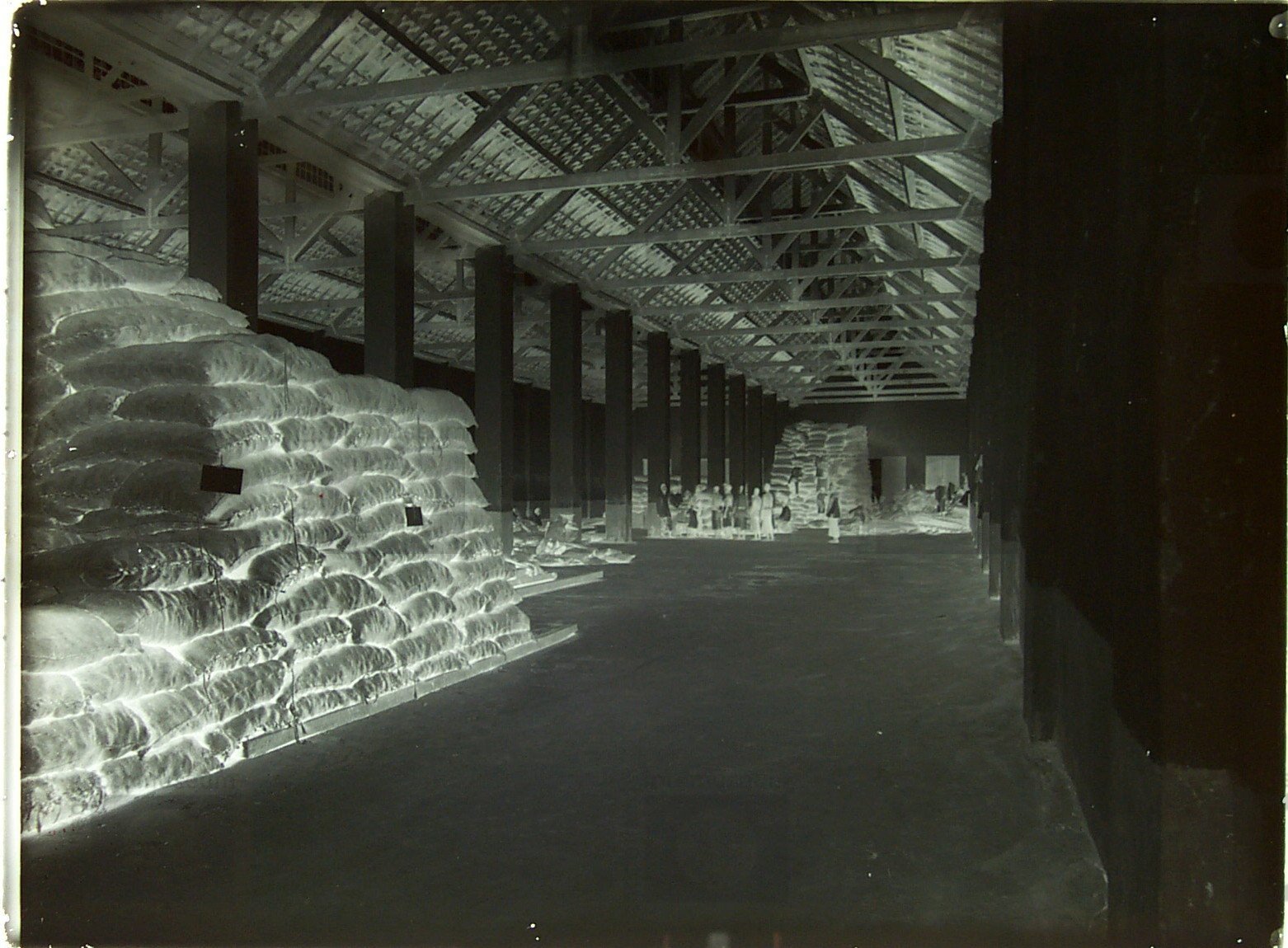 Pakhuis met gevulde balen, Java, Indonesië (1919-1930)